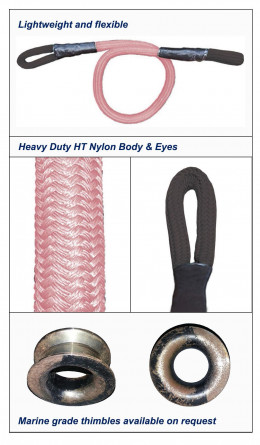 All strops come fitted with a heavily protected soft eye splice in each end and feature a tight heavy duty HT Nylon cover to minimise ingress of dirt and assist cleaning.